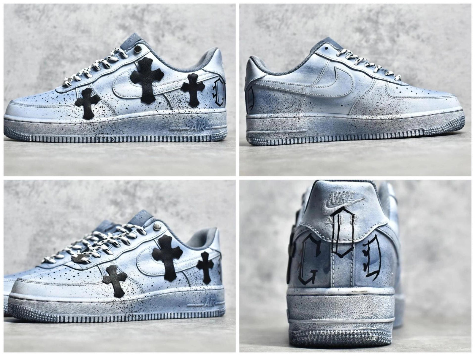 Bestselling custom "Blue Chrome Hearts" Air Force 1 with classic style and comfort. Features a unique, eye-catching design with water- and crack-resistant finish.