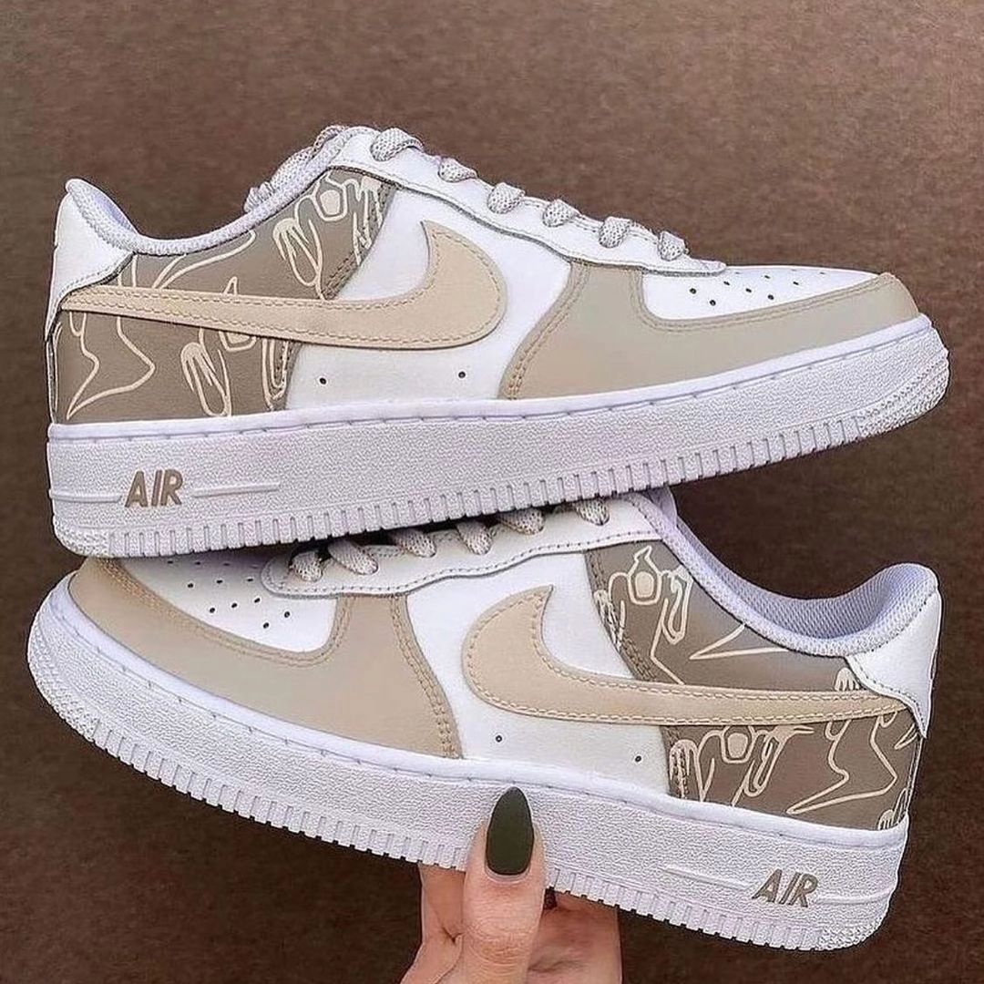 These Custom Air Force 1 sneakers come in a sleek gray, purple, and green colorway. The customized design adds a unique touch to the classic Air Force 1 style. With high-quality materials and a stylish look, these shoes are the perfect addition to any sneaker collection.