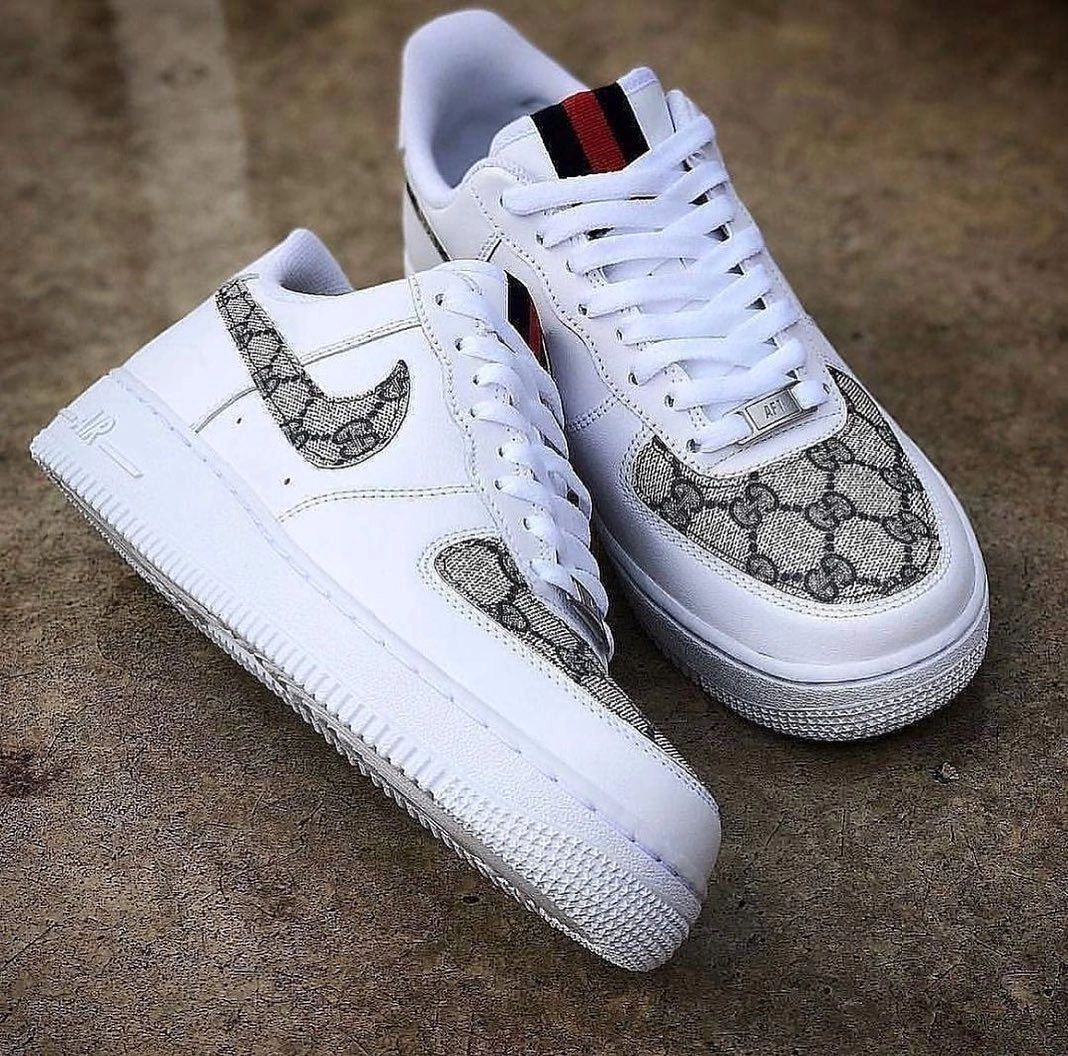 Elevate your style with the Custom Air Force 1 Guci Logo. These iconic sneakers feature a unique Guci logo design that adds a touch of luxury to any outfit. Made with premium materials, these shoes are crafted to provide comfort and durability. Perfect for any fashion-forward individual looking to make a statement.