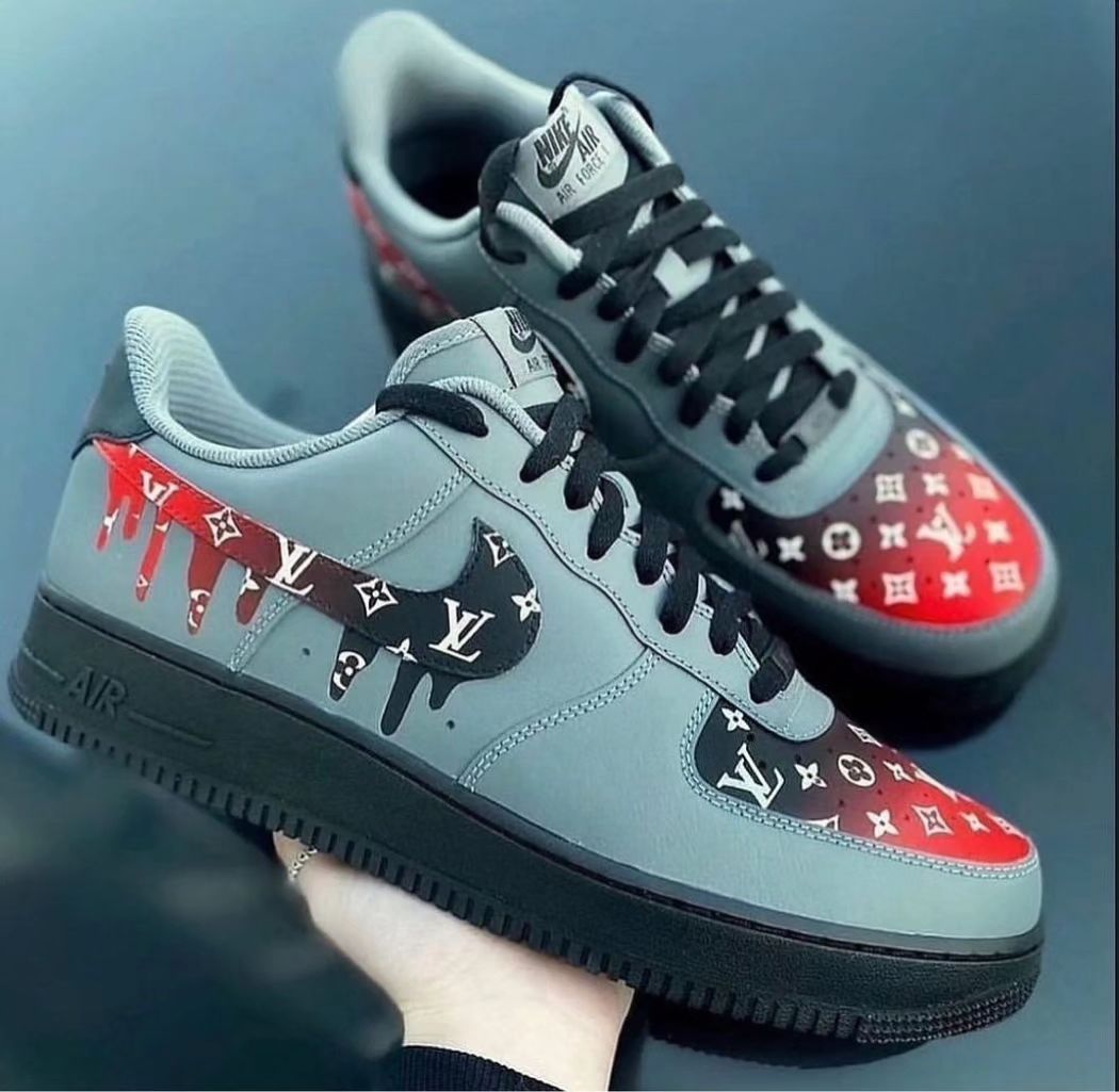 Elevate your street style with the Custom Air Force 1 Lv Swoosh Dripping Gray. Handcrafted with precision, these sneakers feature a unique dripping design on the iconic Swoosh, adding a touch of edginess to your look. Made with quality materials, these custom shoes are sure to make a statement and elevate your sneaker game.