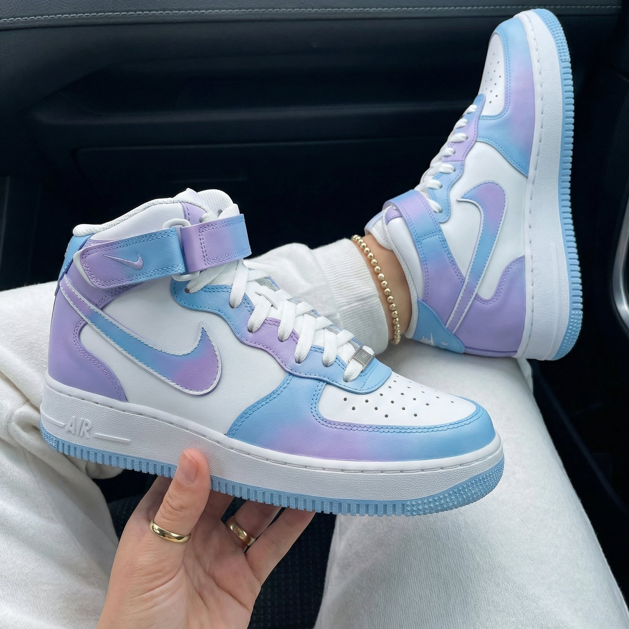 Step into style with these one - of - a - kind Custom AF1s! Our Custom Air Force 1 Baby Blue Wedding Splatter Design sneakers are a true showstopper. The soft baby blue hue is complemented by playful splatter details, giving them a fun and unique look. With "Wedding" and "Custom" written in a stylish script, these Custom shoes are perfect for making a statement, whether it's at a wedding or just on a casual day out. These Custom Sneakers blend fashion and individuality, ensuring you stand out from the crowd. Don't miss out on adding this exclusive pair to your collection!