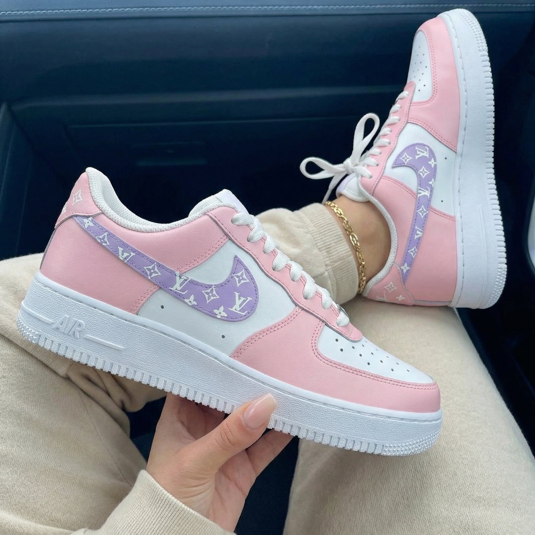 Custom Air Force 1 Baby Pink Purple LV Logo