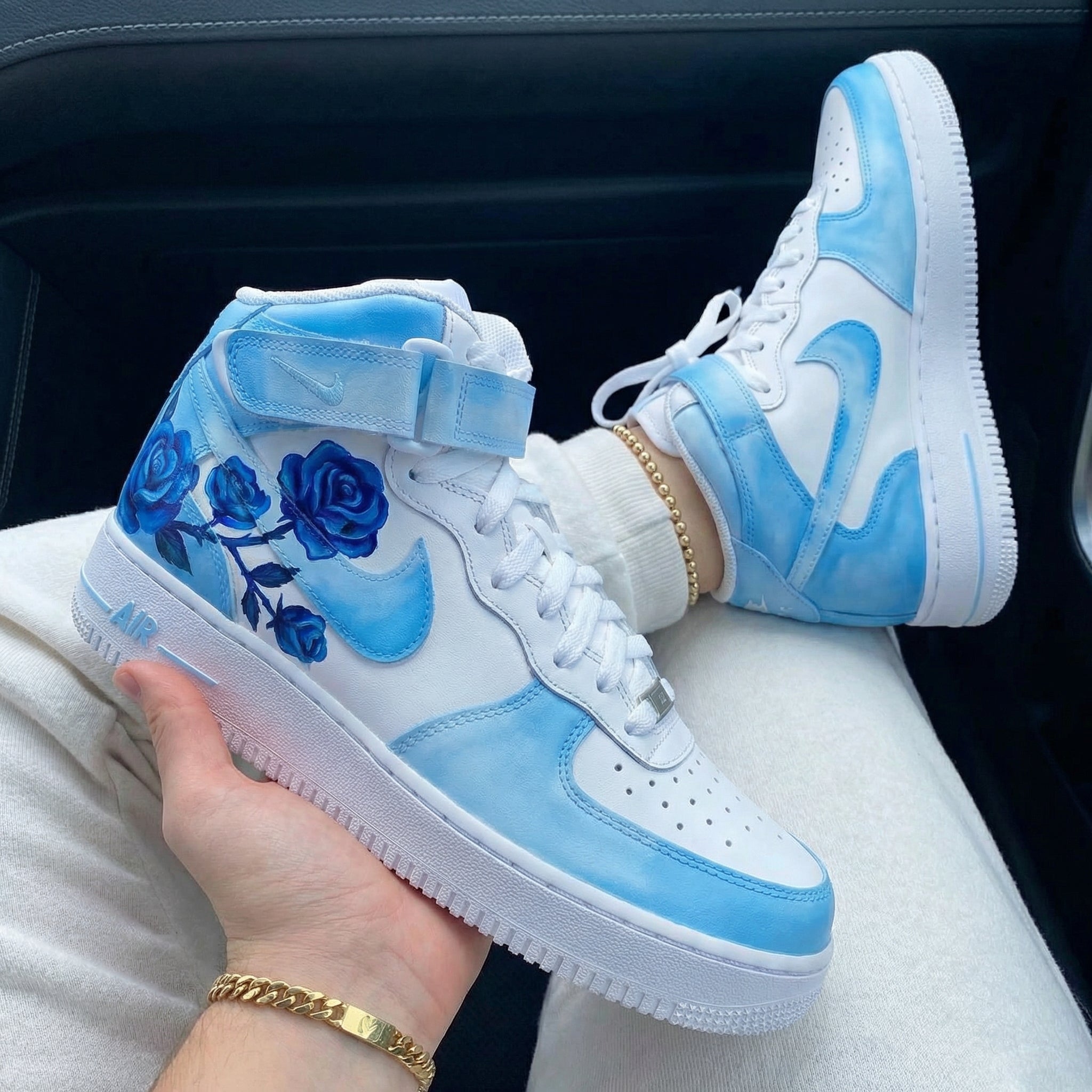 Hey sneakerheads! Check out these one - of - a - kind Custom AF1s. These Custom shoes are a blend of style and individuality. The beige and white colorway is complemented by a stunning hand - painted rose pattern that runs along the iconic swoosh. It's like wearing a piece of art on your feet! Whether you're hitting the streets or just hanging out, these Custom Sneakers are sure to turn heads and start conversations. Step up your sneaker game with these uniquely designed Air Force 1s!