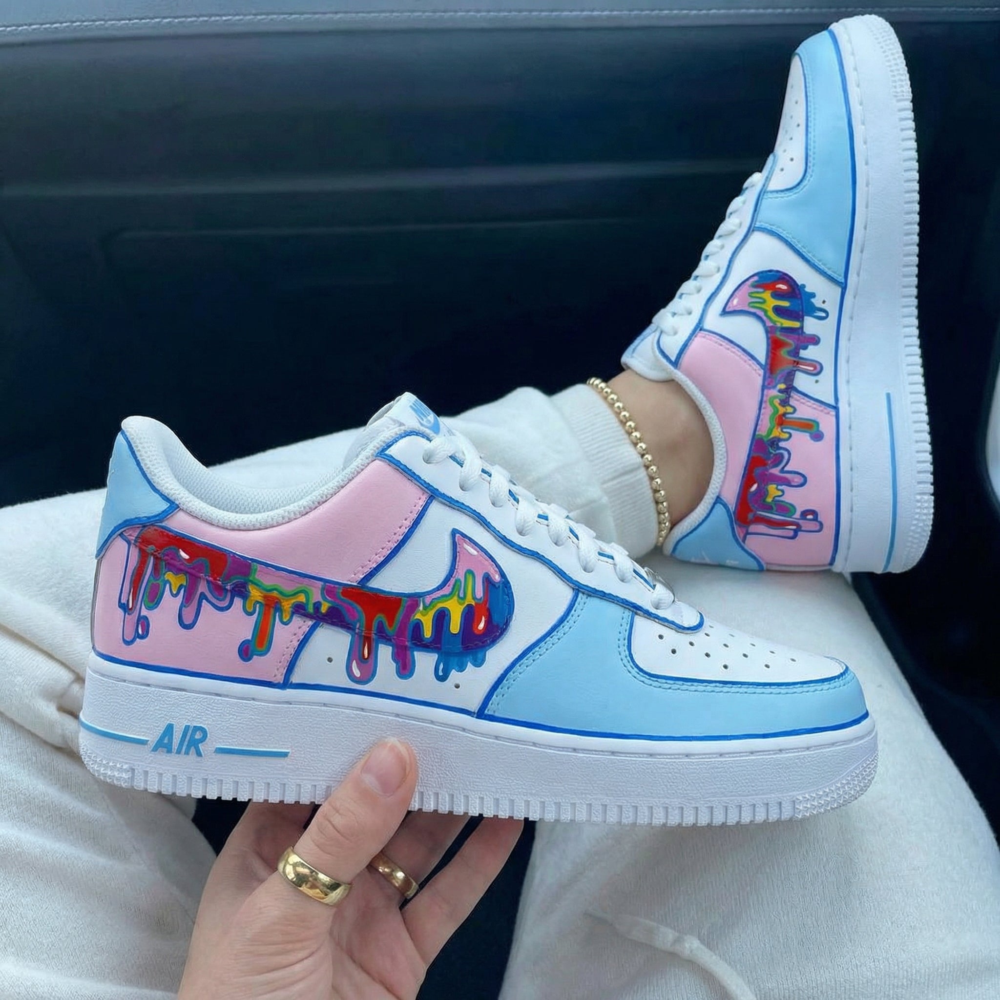 Step up your sneaker game with these one - of - a - kind Custom AF1s! These Custom shoes are a true masterpiece, featuring a striking black and baby pink paisley pattern that pops against the clean white base. The iconic Nike Swoosh in black adds a classic touch, while the playful paisley design gives these Custom Sneakers a unique and stylish edge. Whether you're hitting the streets or just hanging out, these AF1s are sure to turn heads and make a statement. Comfort meets style in these amazing kicks!