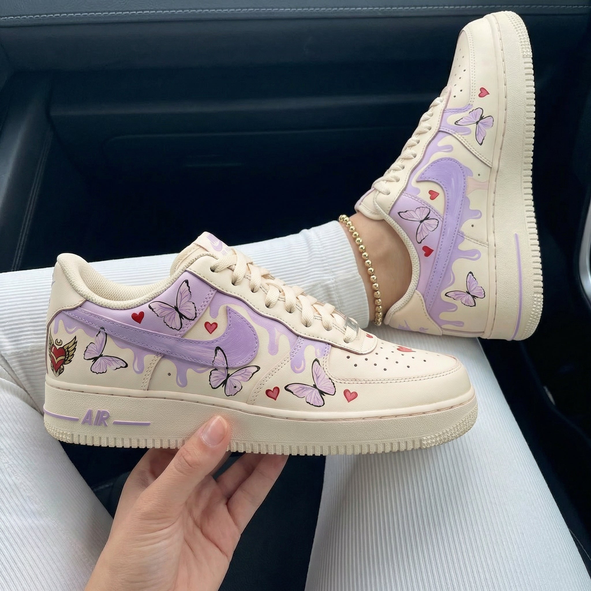 Step up your sneaker game with these one - of - a - kind Custom AF1s! These custom shoes feature a striking black and red drip design that's sure to turn heads. The bold black drips combined with splashes of red create a dynamic and edgy look. Whether you're hitting the streets or just hanging out, these custom sneakers add a touch of urban cool to any outfit. Each pair is hand - crafted with care, making them truly unique. Don't miss out on the chance to own these stylish and exclusive kicks!