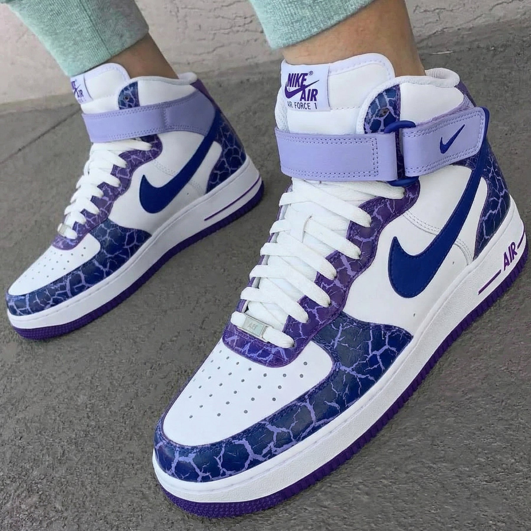 Custom Air Force 1 Purple Navy Crackle Pattern