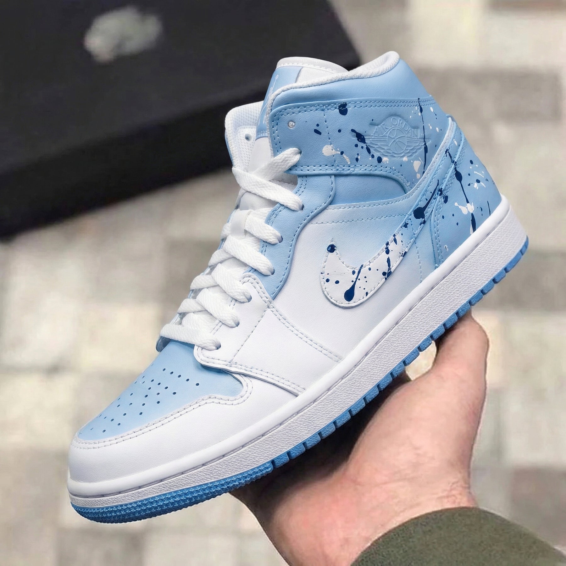 Custom Air Jordan 1 Baby Blue White Splatter Paint