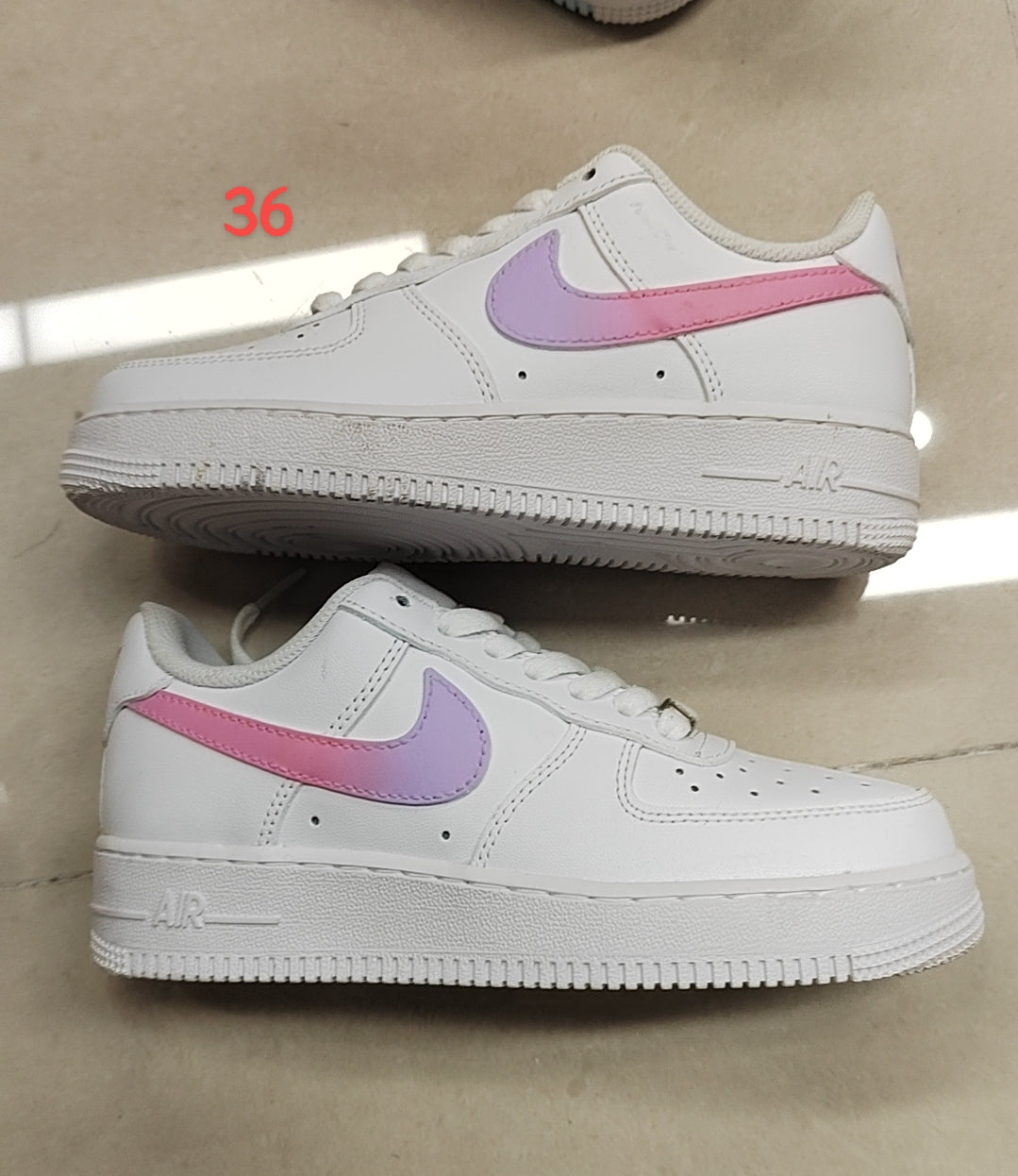 Step up your sneaker game with these one - of - a - kind Custom AJ1s! The soft baby pink and crisp white colorway is not only eye - catching but also incredibly versatile. Whether you're dressing up or going for a casual look, these sneakers are sure to be a statement piece.