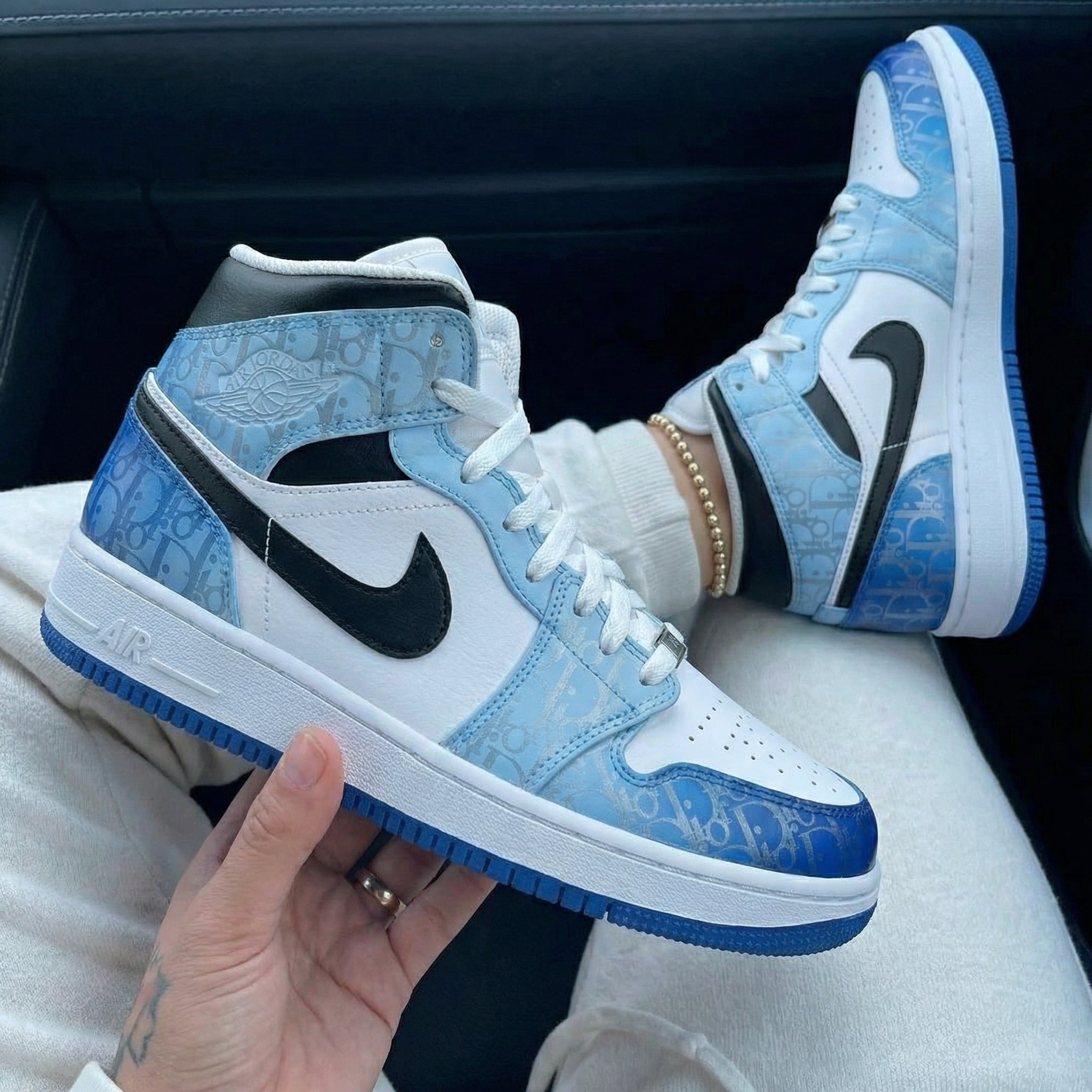 Hey sneakerheads! Check out these sick Custom AJ1s! The beige and black color - way is already a classic, but we've taken it to the next level with a unique flame design that's sure to turn heads. Whether you're on the court or just strutting down the street, these Custom shoes are the perfect blend of style and comfort. The high - top silhouette offers great ankle support, and the iconic Air Jordan logo adds that extra touch of swag. Step up your sneaker game with these one - of - a - kind Custom Sneakers!