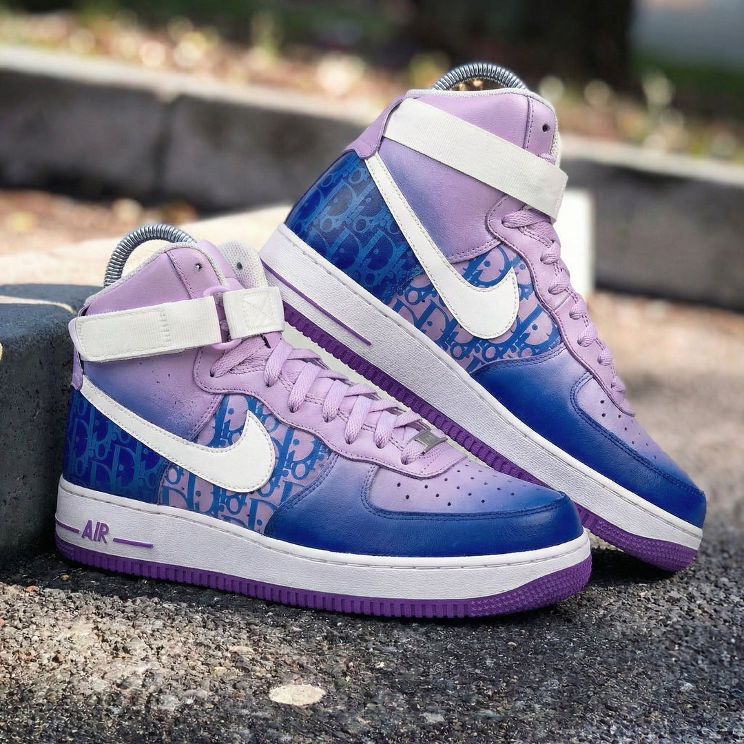Custom Air Force 1 Baby Purple Blue Dior Pattern