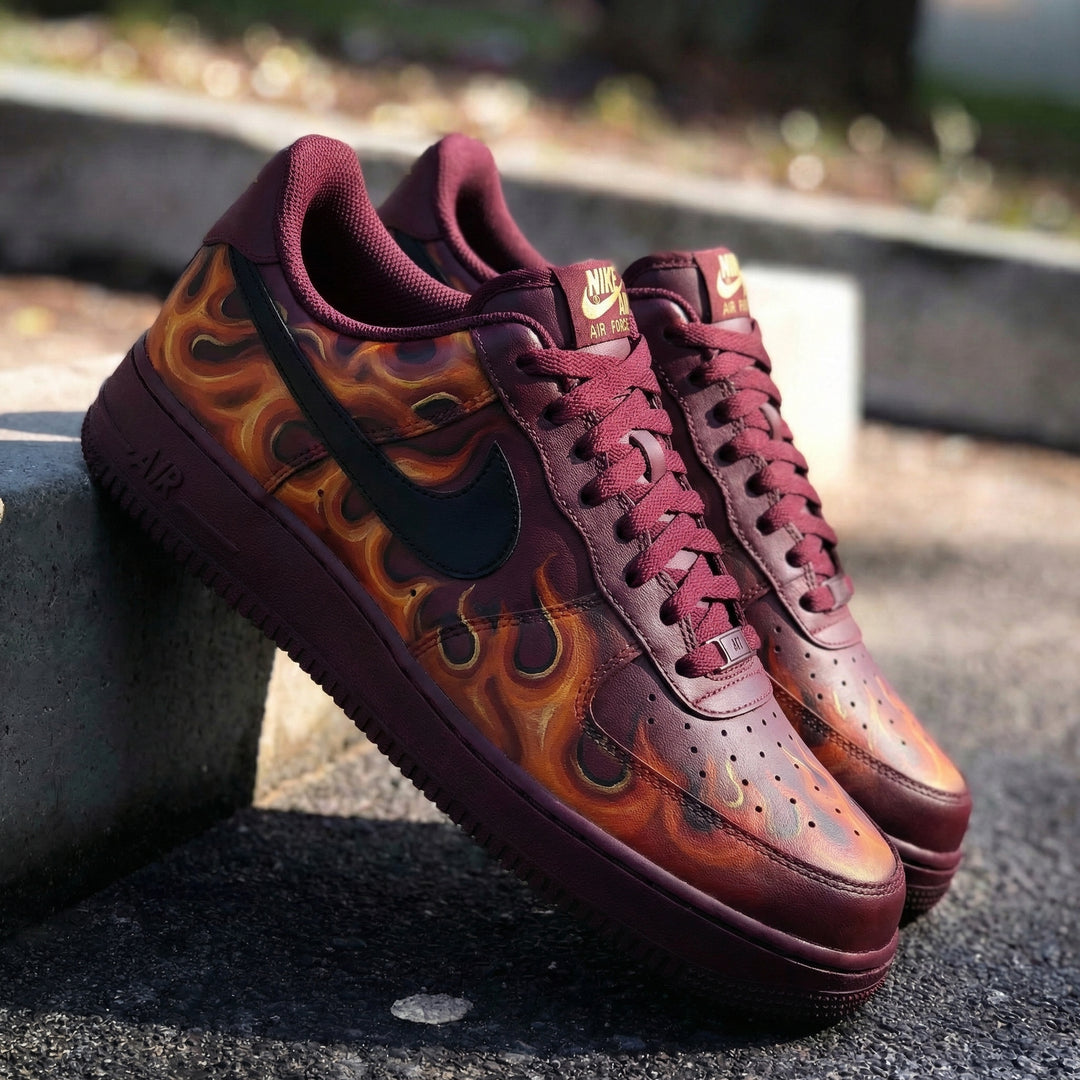 Custom Air Force 1 Burgundy Flame Pattern