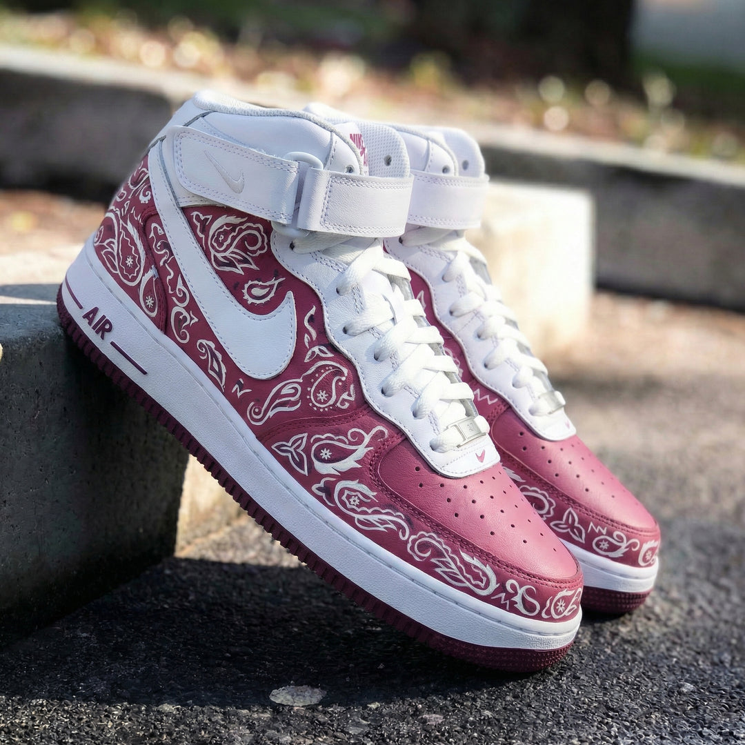 Custom Air Force 1 Maroon Paisley Pattern