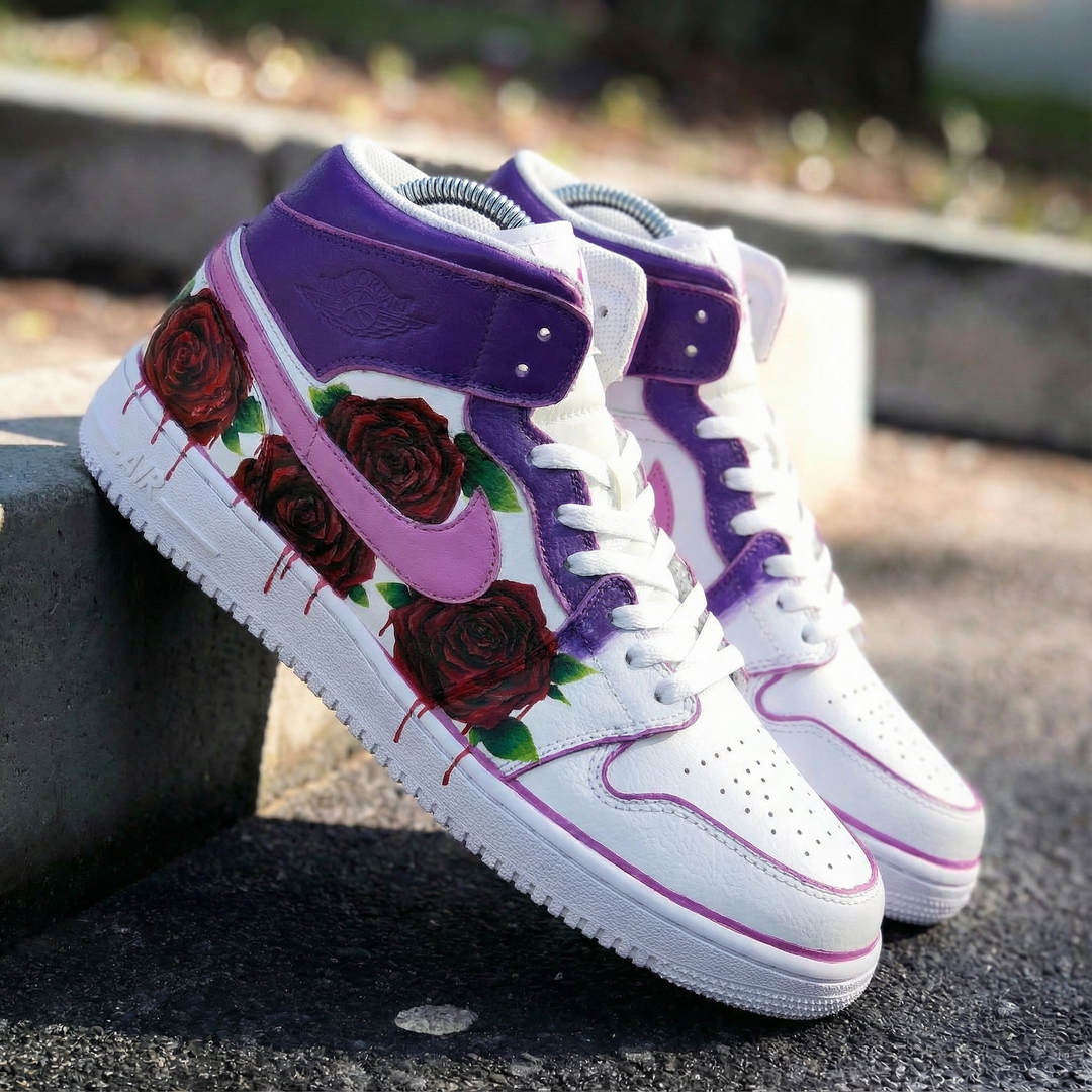 Custom Air Jordan 1 Purple Pink Rose Design