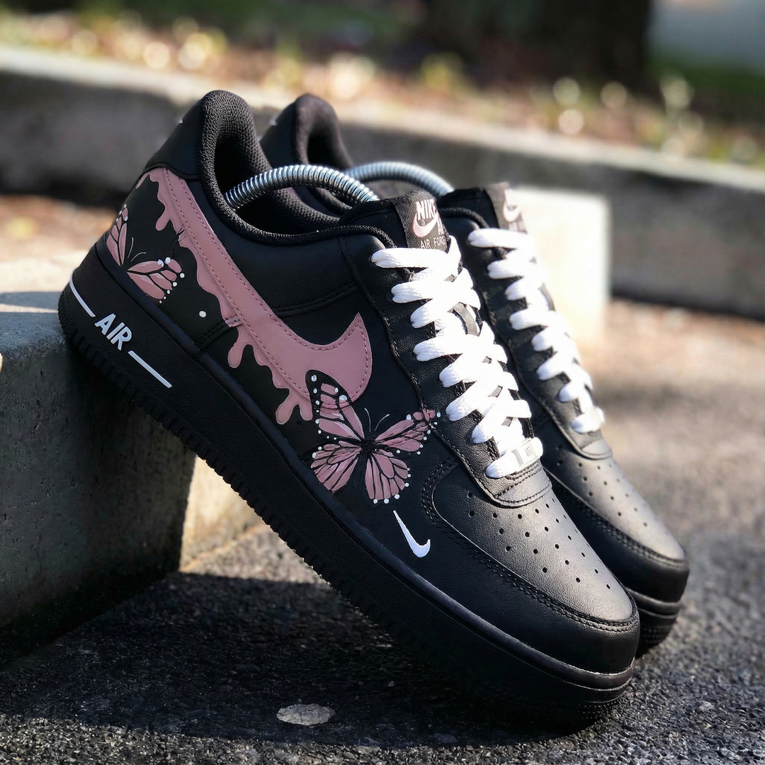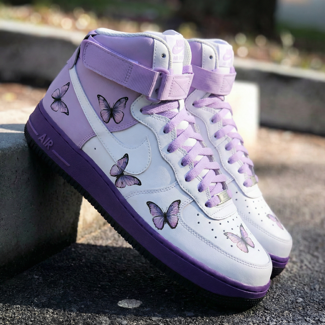 Custom Air Force 1 Purple Blue Butterflies Drip Design
