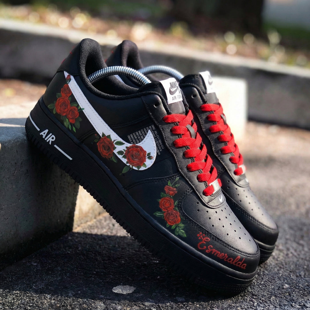 Custom Air Force 1 Blue Roses and Butterfly Design