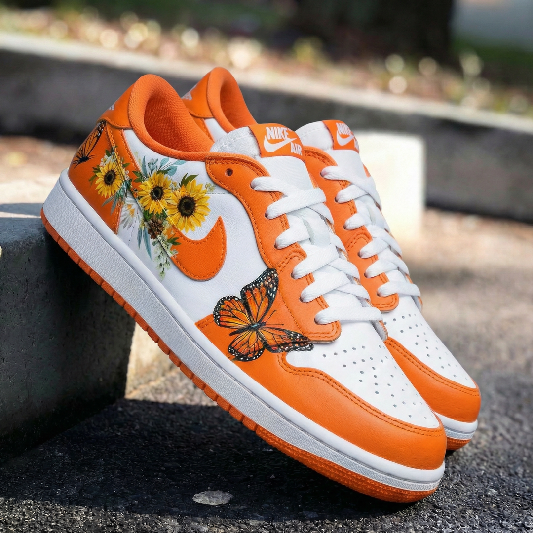 Custom Air Force 1 Orange Sunflowers Butterflies