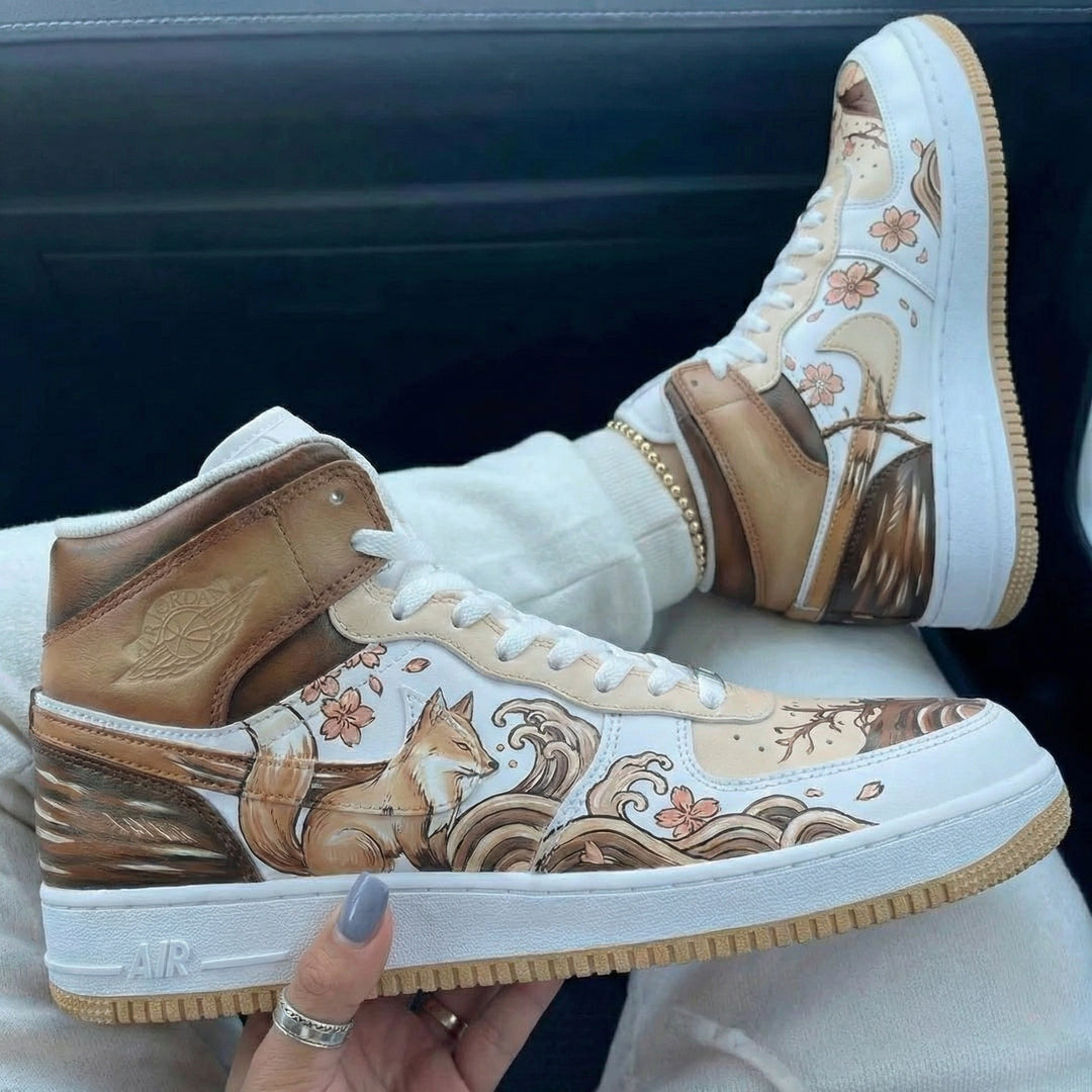 Custom Air Force 1 Brown Beige Fox and Cherry Blossom Design