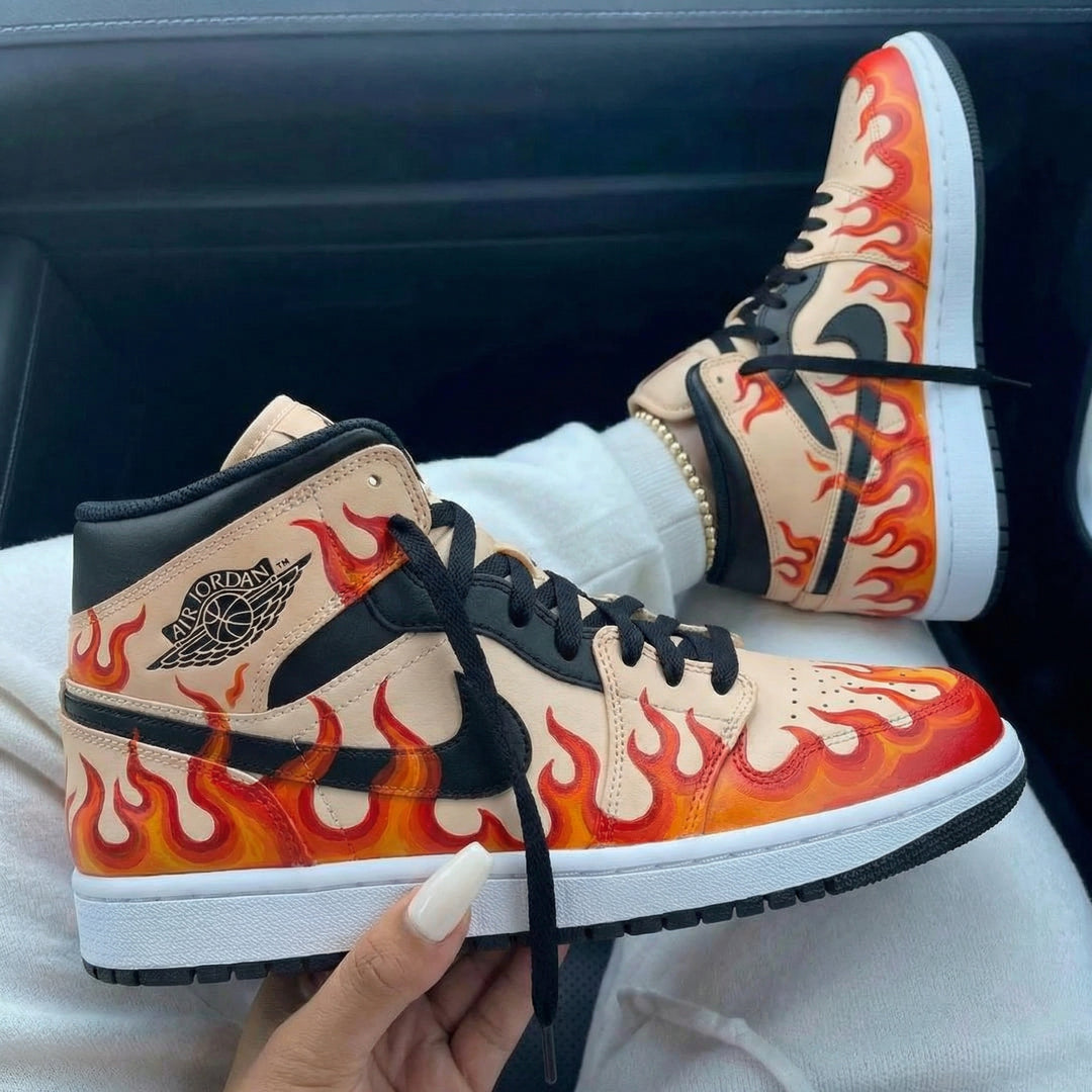 Custom Air Jordan 1 Beige Black Flame Design