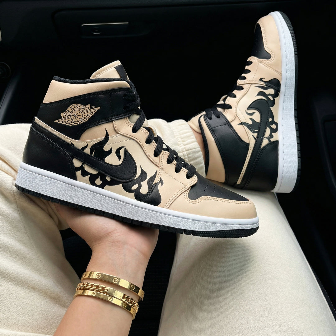 Custom Air Jordan 1 Tan White Purple Magic Pattern