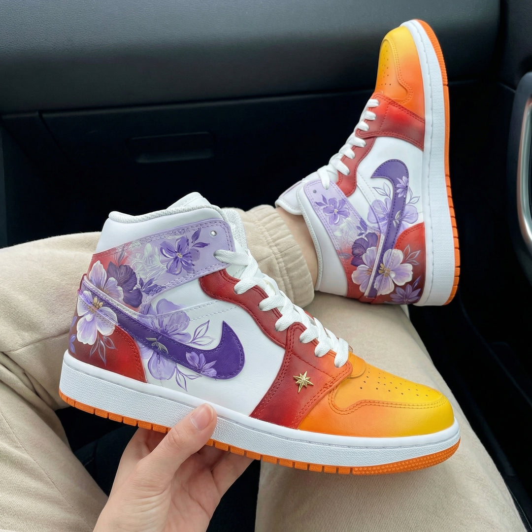 Custom Air Jordan 1 Orange Red with Floral Patterns
