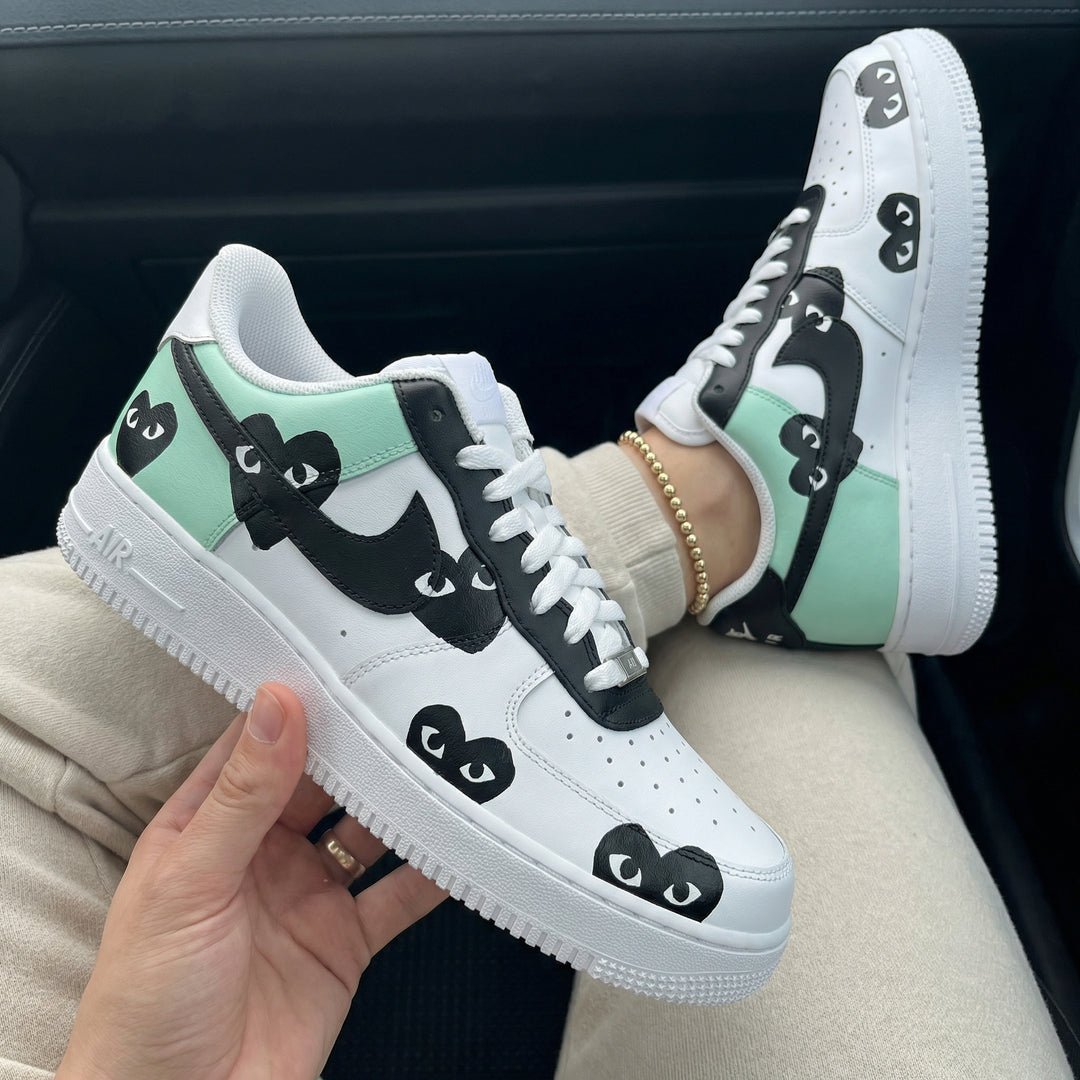 Custom Air Force 1 Mint Green Black Heart Pattern
