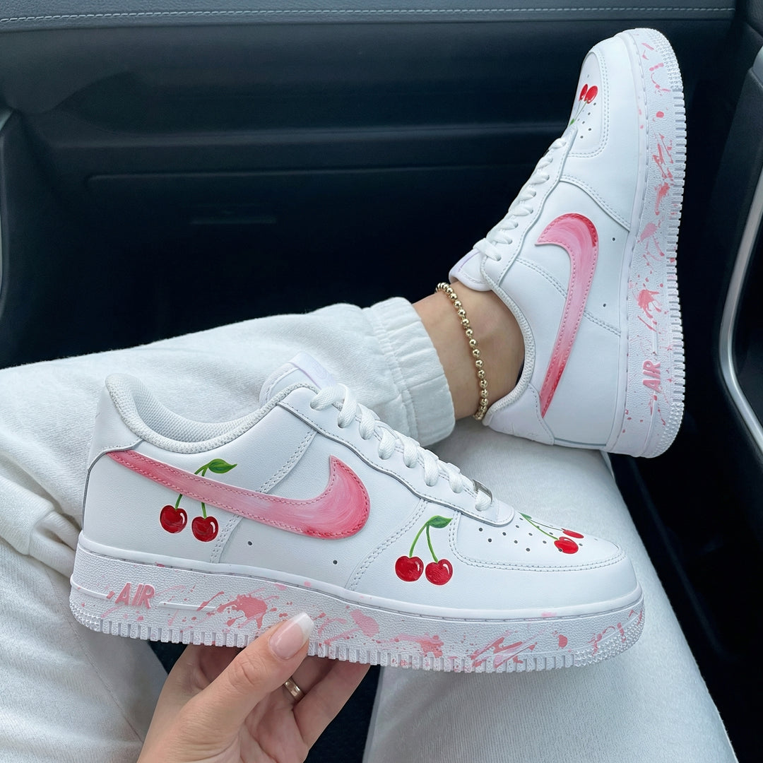 Custom Air Force 1 Baby Pink Cherry Pattern