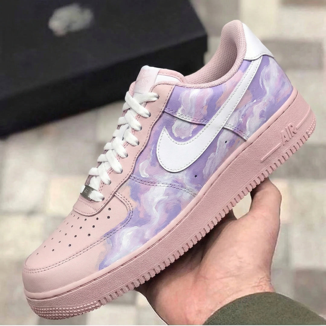 Custom Air Force 1 Baby Pink Purple Clouds Pattern