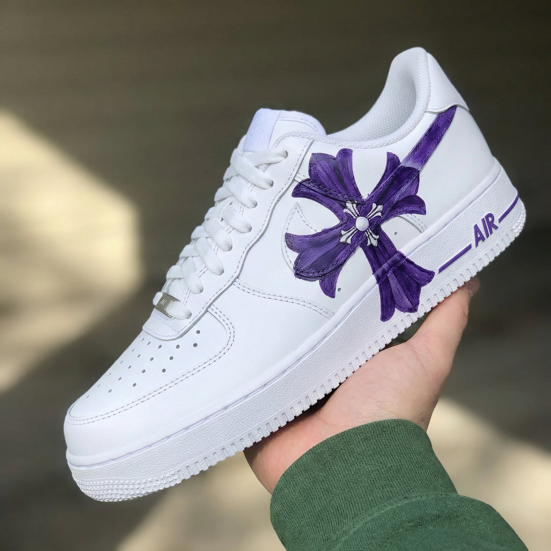 Custom Air Force 1 White Purple Cross Design