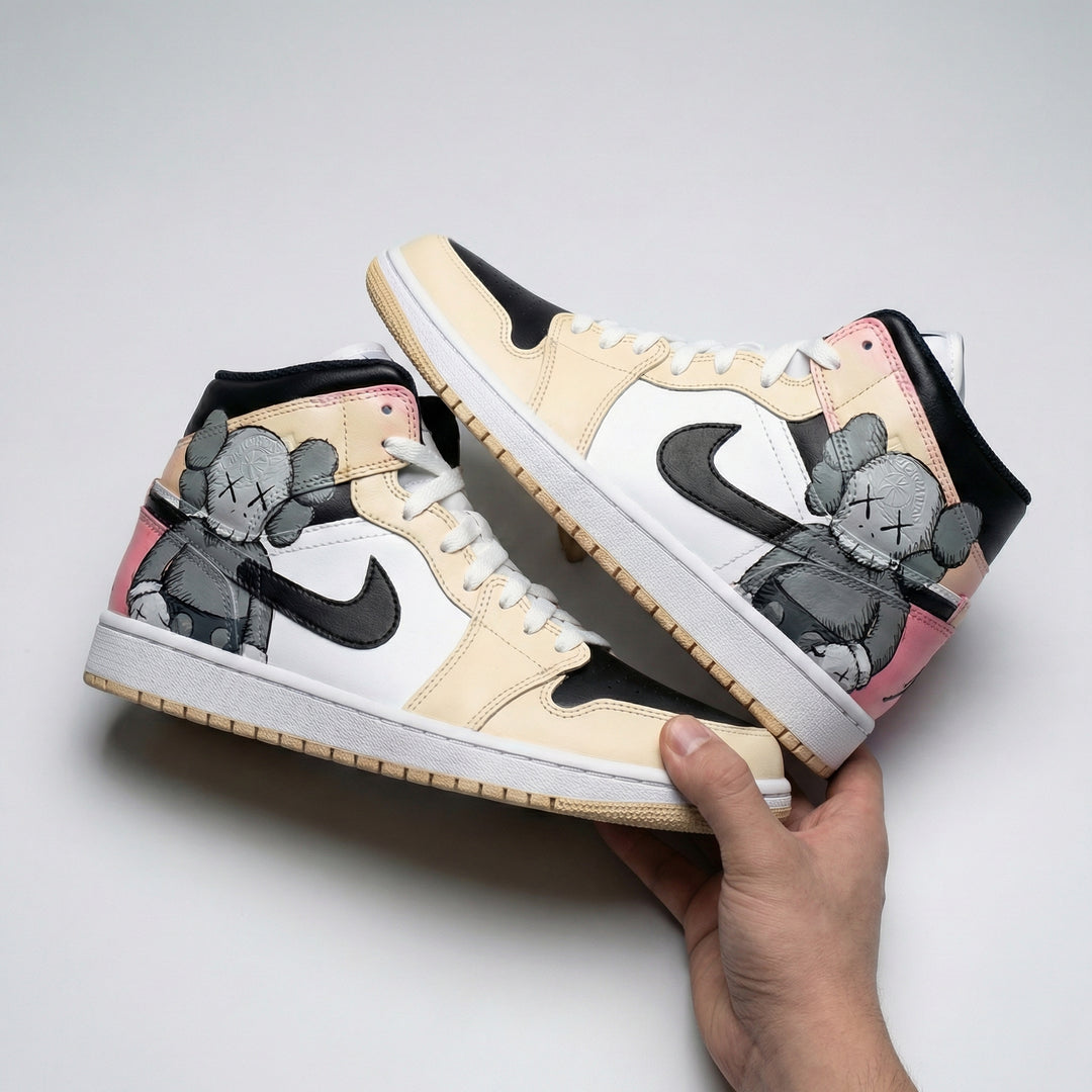 Custom Air Jordan 1 Black Baby Pink Tan KAWS Cartoon