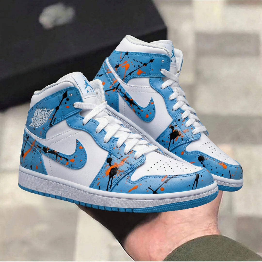 Custom Air Jordan 1 Blue Orange Black Splatter Paint