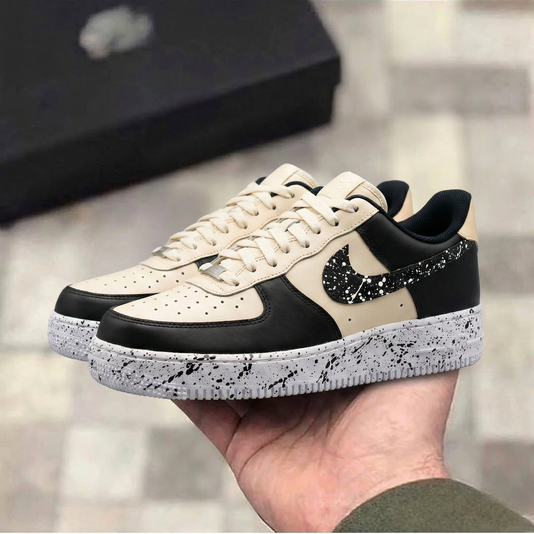 Custom Air Force 1 Beige Black Splatter Design