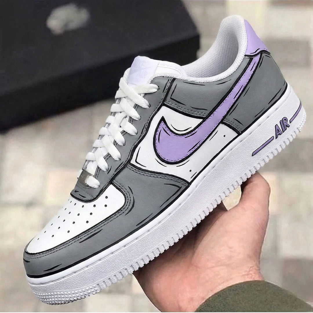 Custom Air Force 1 Gray Baby Purple Cartoon Style