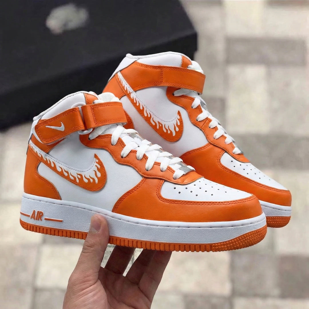 Custom Air Force 1 White Orange Flame Swoosh