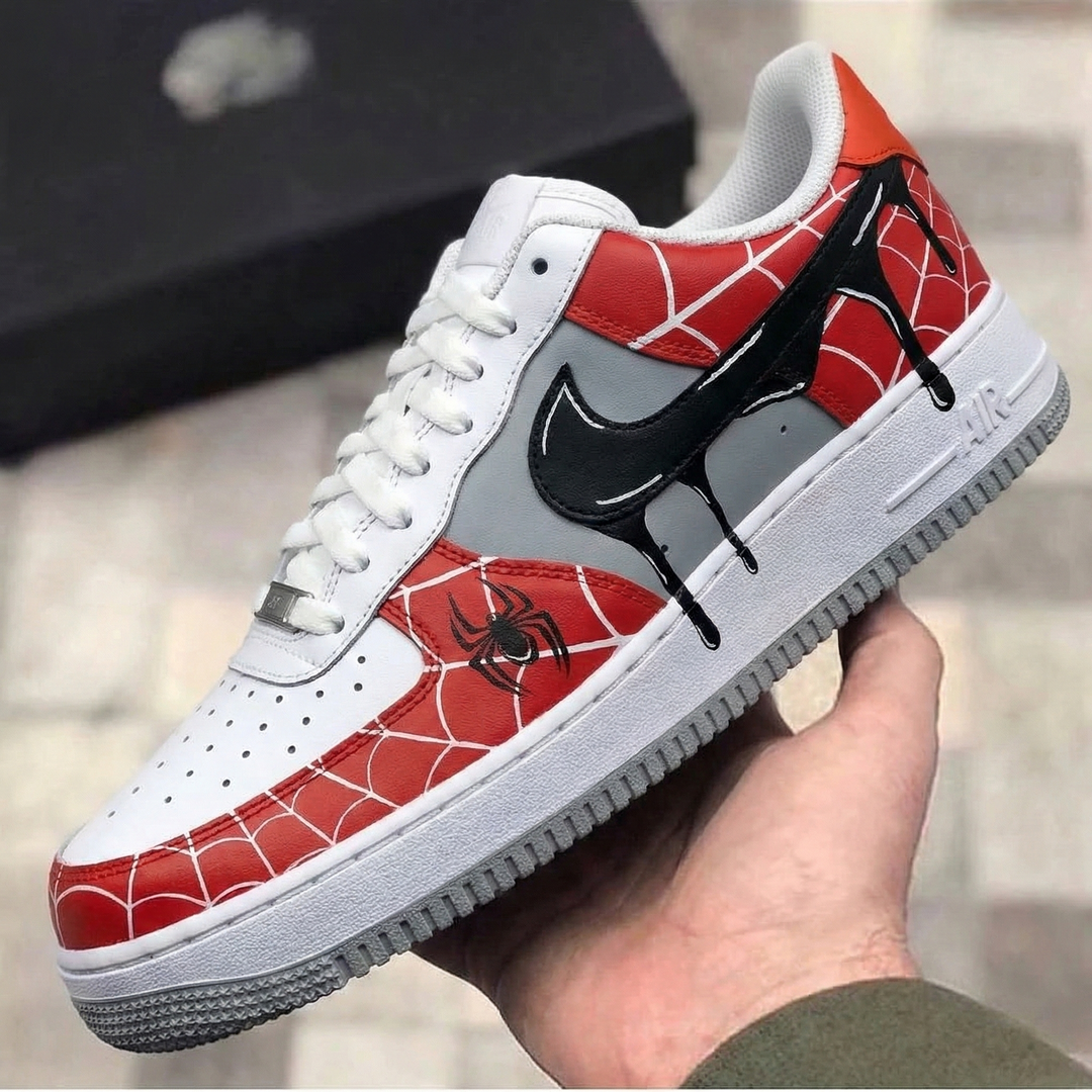 Custom Air Force 1 Red Gray Spider Web Spider Black Drip