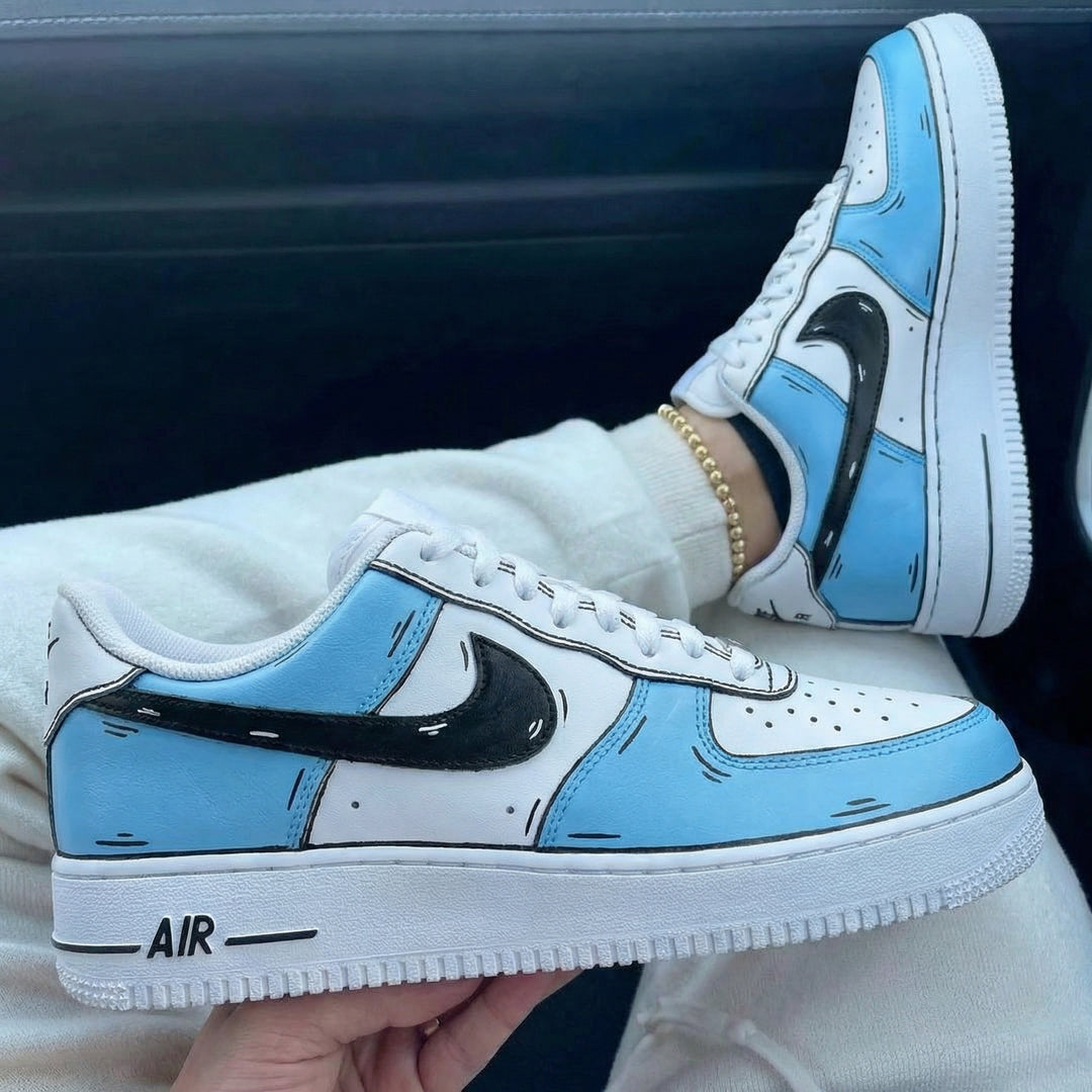 Custom Air Force 1 Baby Blue Black Cartoon Comic Design