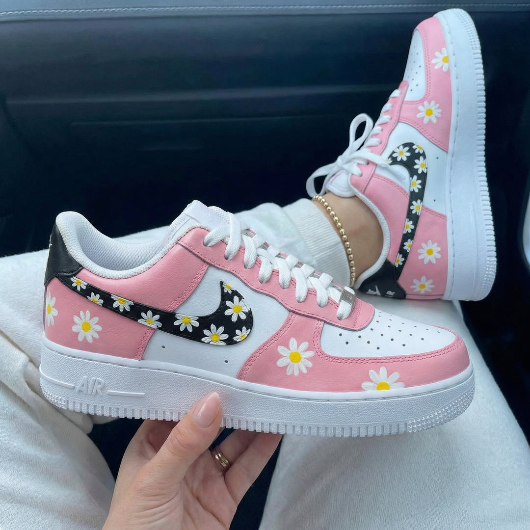 Custom Air Force 1 Pink Black Daisies