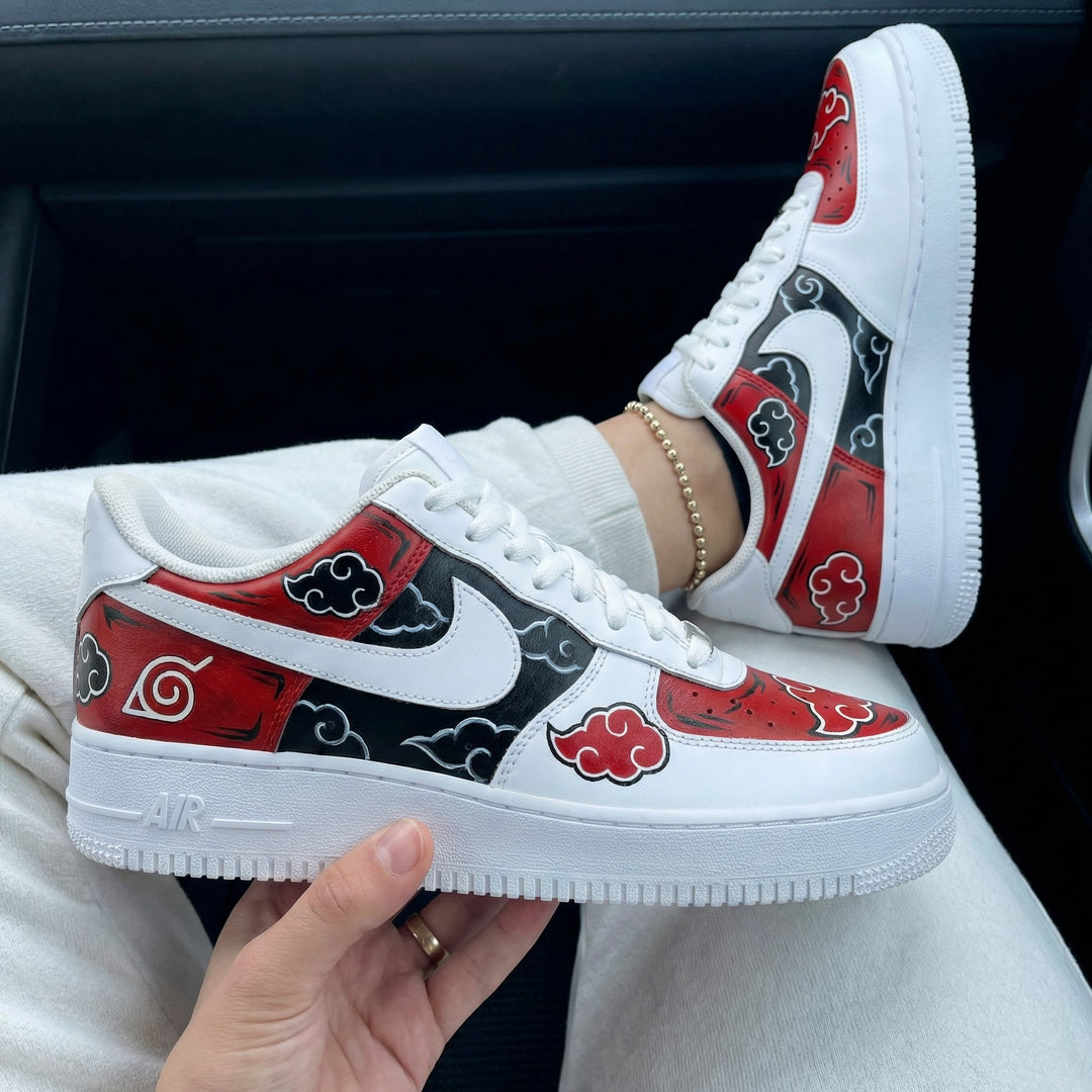 Custom Air Force 1 Red Black Naruto Clouds Symbols