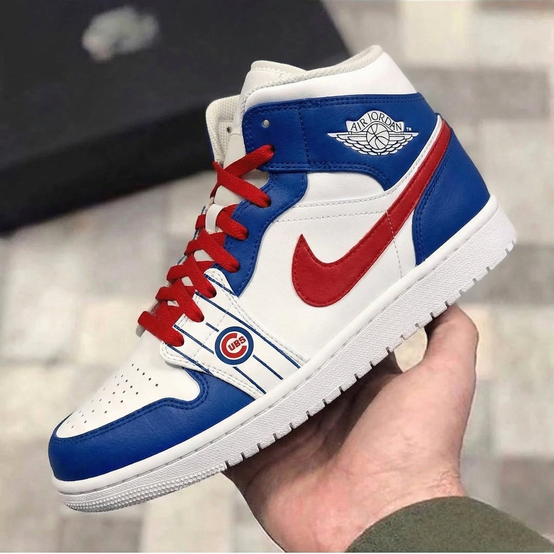 Custom Air Jordan 1 Blue Red Cubs Logo Stripes
