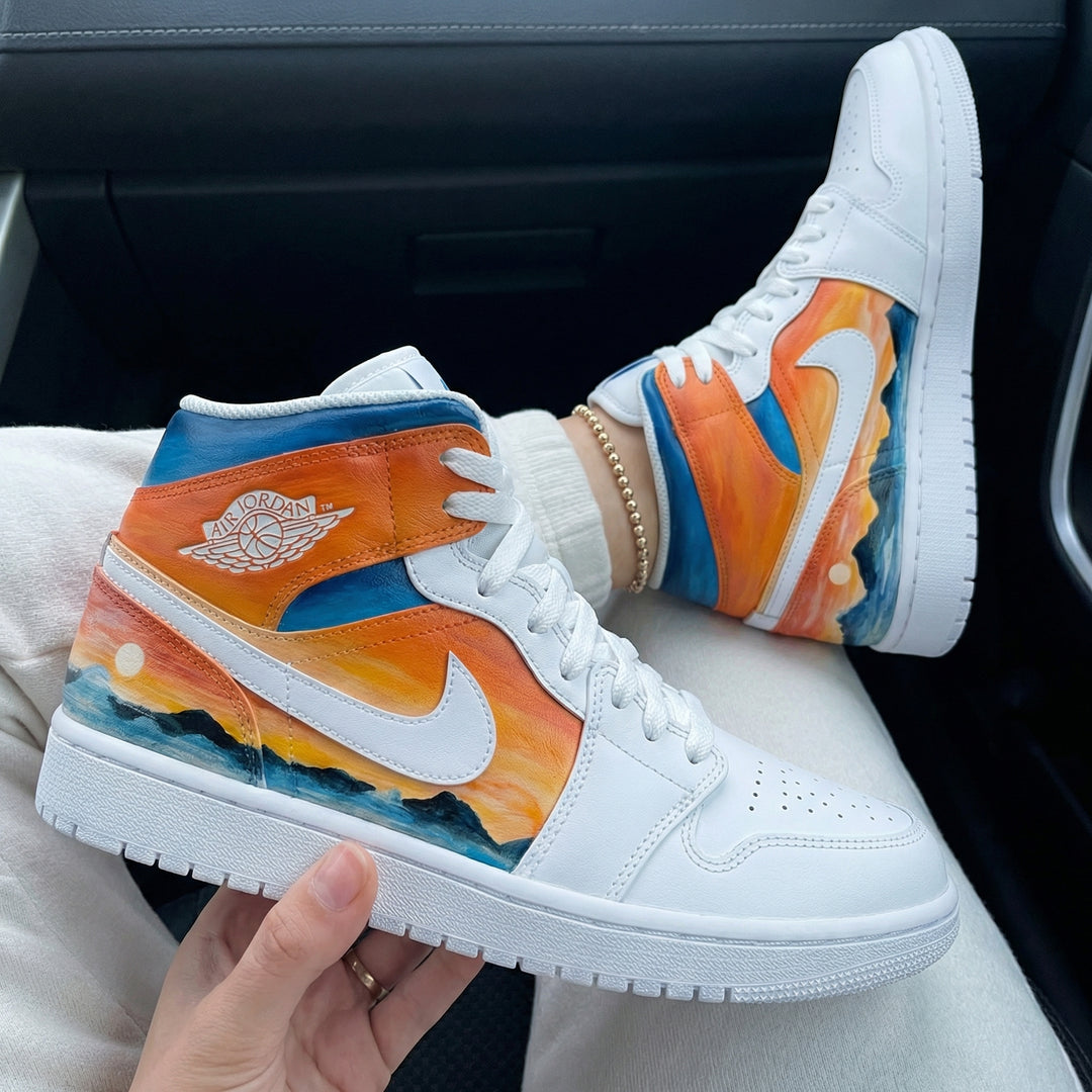 Custom Air Jordan 1 Orange Blue Sunset Landscape