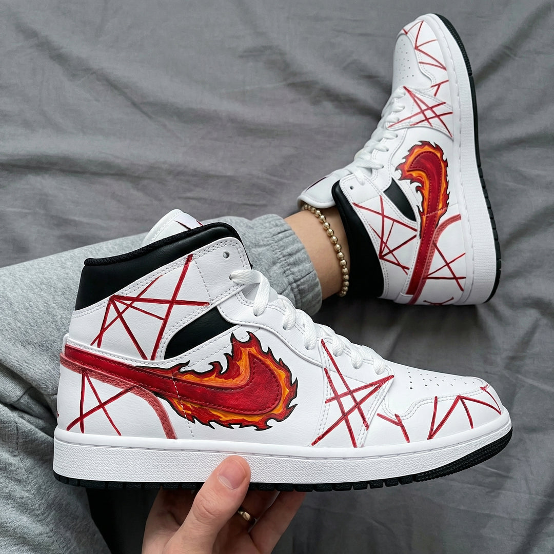 Custom Air Jordan 1 Red Black Flame Swoosh Pentagram