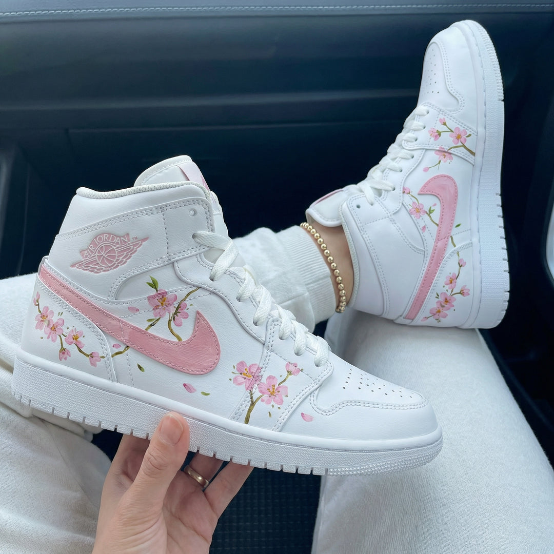 Custom Air Jordan 1 White Baby Pink Cherry Blossoms