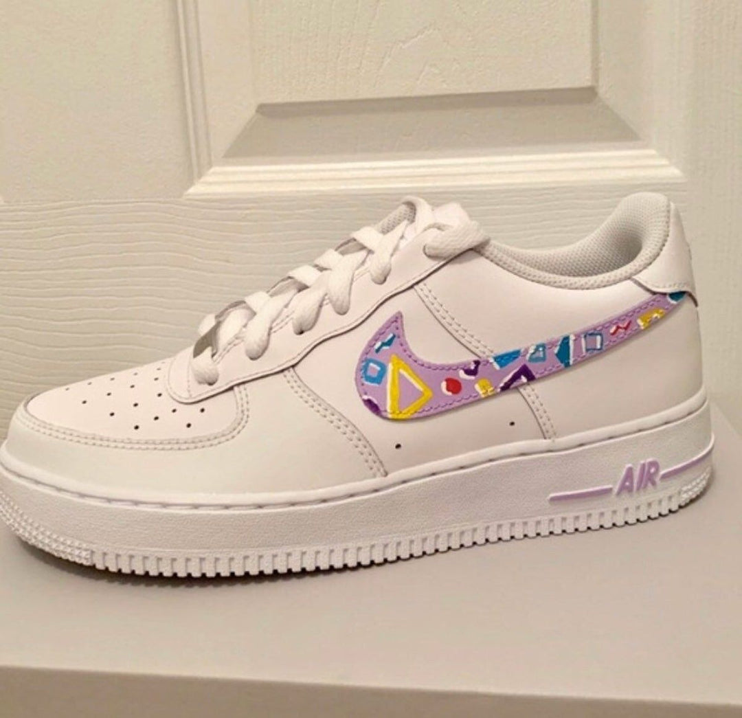 Custom Air Force 1 Purple Green Cartoon Pattern