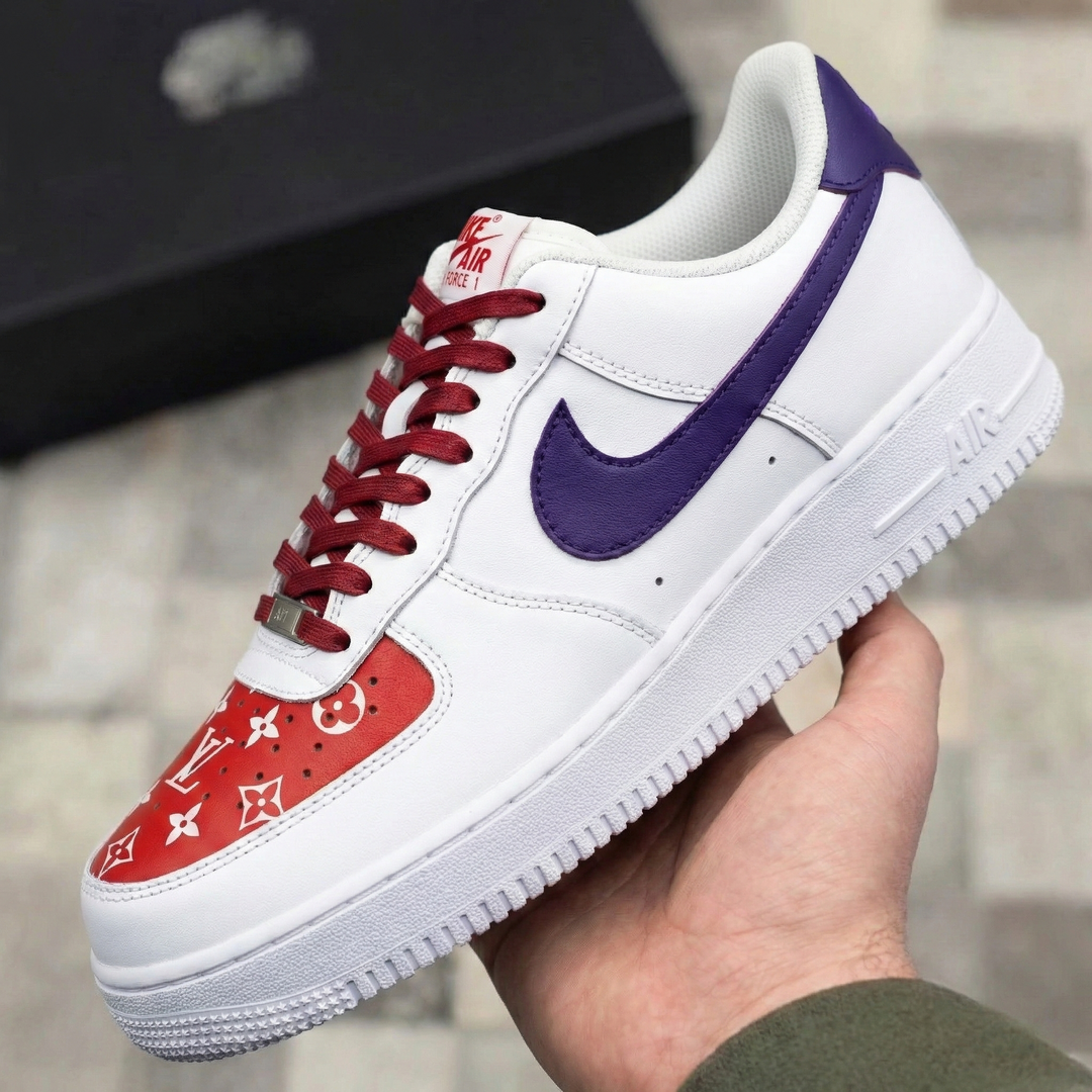 Custom Air Force 1 Red Gray Spider Web Spider Black Drip
