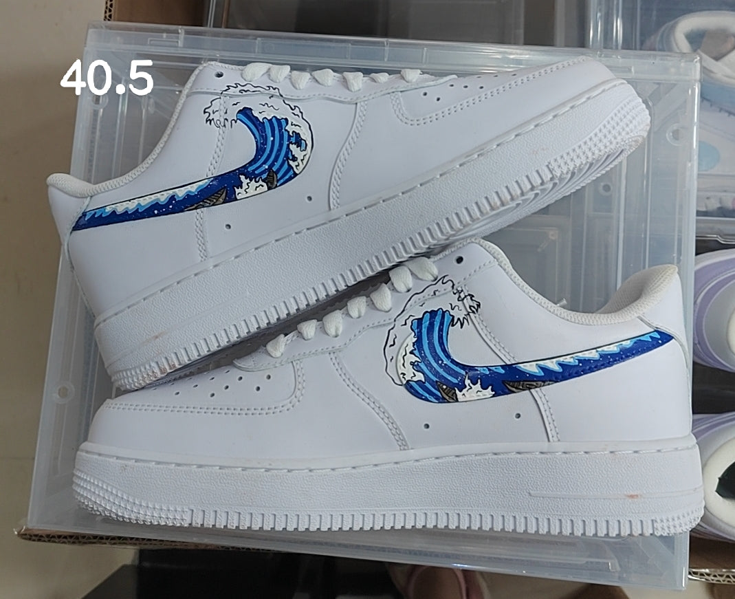 Step up your sneaker game with these one - of - a - kind Custom AF1s! Featuring a stunning baby blue and pink color block design, these custom sneakers are a true head - turner. The soft pastel shades blend seamlessly, creating a fresh and stylish look that's perfect for any occasion. Crafted with high - quality materials, these Custom AF1s not only look great but also offer superior comfort. The classic Air Force 1 silhouette is maintained, ensuring a timeless appeal. Available in EUR 38.5, these custom shoes are a must - have for sneaker enthusiasts looking to add a unique piece to their collection.